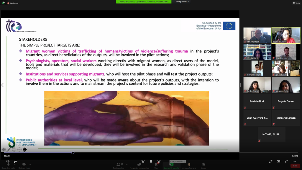 Acabamos de terminar el evento ONLINE VIA ZOOM del proyecto SIMPLE: Social Integration of Migrants and activation of Paths for Learning and Employability.