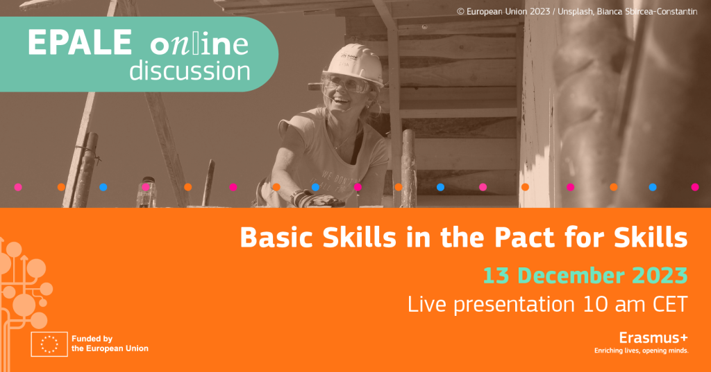 El miércoles 13 de diciembre de 2023, de 10.00 a las 15.00 horas CET, EPALE acogerá un debate en línea sobre capacidades básicas en el marco del Pacto por las Capacidades. Este acto es una excelente oportunidad para que educadores, proveedores de formación, responsables políticos y expertos en aprendizaje de adultos exploren la integración de las capacidades básicas en el marco de la Iniciativa del Pacto por las Capacidades. Resumen del evento El debate comienza a las 10.00 horas CET con una sesión en directo de 40 minutos en la que se entrevistará a Miguel Fernández Díez, Responsable de Política del Pacto por las Capacidades de la Comisión Europea, junto con representantes clave de importantes pactos que también se centran en las capacidades básicas. Esta sesión interactiva pretende arrojar luz sobre el papel clave de las capacidades básicas en la Iniciativa del Pacto por las Capacidades y debatir los diversos canales y recursos disponibles para apoyar este esfuerzo. Debate interactivo y participación Tras la retransmisión en directo, la conversación pasará a un formato escrito que permitirá a los miembros de la comunidad EPALE participar y contribuir activamente. Los participantes podrán profundizar en los debates, reflexionar sobre las publicaciones, comentar y plantear nuevas preguntas para explorar conjuntamente el potencial de los pactos para abordar los retos de las capacidades básicas y las vías para unirse a la iniciativa. El debate estará moderado hasta las 15.00 horas CET, lo que garantizará un entorno dinámico e inclusivo para todos los asistentes. Nosotros estaremos ¿te interesa? ponte en contacto con nosotros!