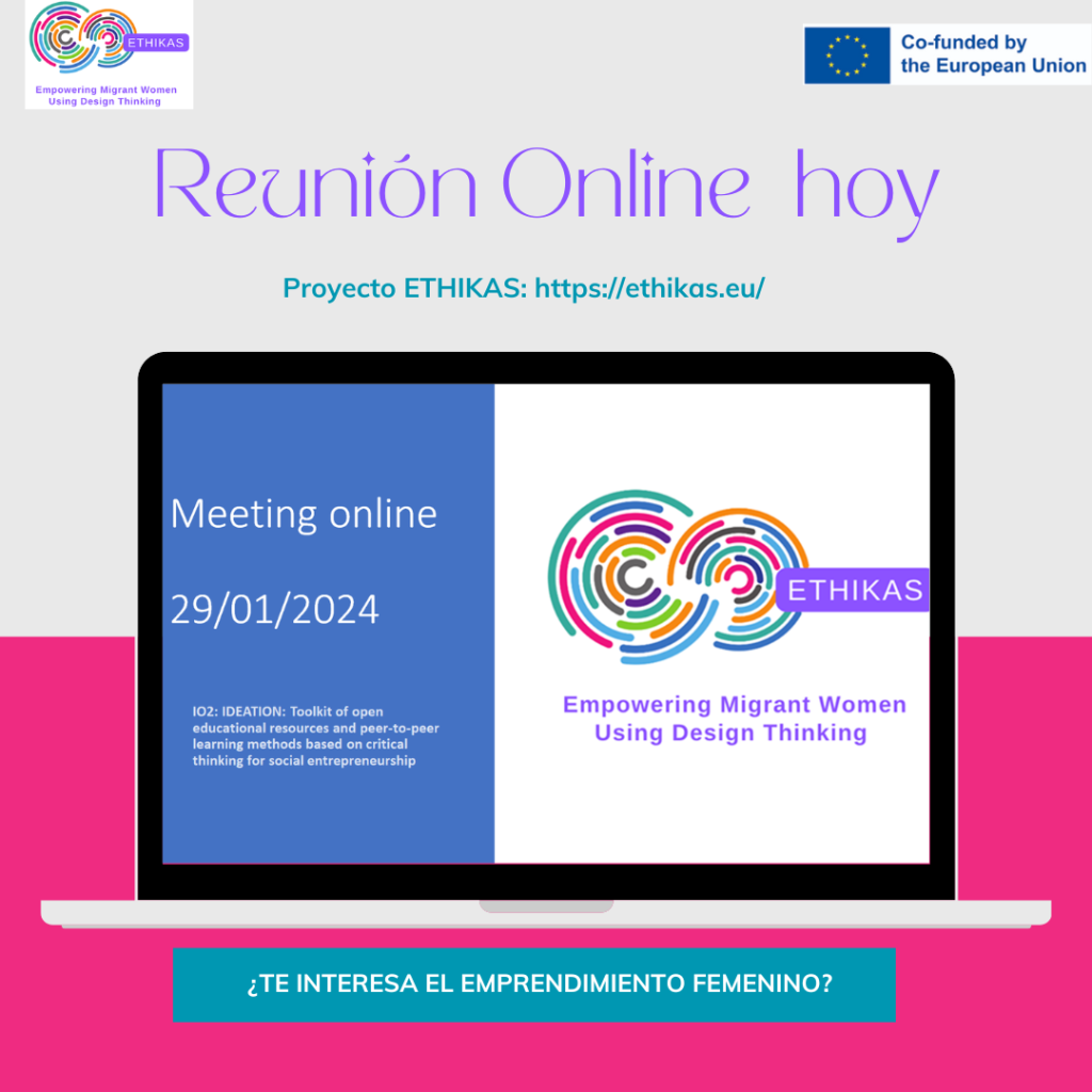 Hoy nos hemos reunido via GMEET con los socios de Ethikas: Empowering Migrant Women Using Design THInKing ApproacheS for Sustainable Entrepreneurship para avanzar en el proyecto. En los últimos años, el número de refugiados y migrantes en Europa sigue siendo alto en la mayoría de los países de la asociación ETHIKAS principalmente debido a las guerras y conflictos bélicos: tras Siria y Ucrania, el conflicto entre Israel y Palestina ha venido a recrudecer el panorama migratorio . Como ya os informamos, Ethikas: Empowering Migrant Women Using Design THInKing ApproacheS for Sustainable Entrepreneurship se aprobó en Suecia el pasado Mayo y los promotores son Internationella Kvinnoföreningen – LRC För Kvinnor, con sede en Malmö. Estamos trabajando para apoyar el emprendimiento social y sostenible de las mujeres migrantes a través de enfoques centrados en el ser humano que las equipen con las habilidades, los conocimientos y la mentalidad necesarias para construir un sistema que funcione para todos: la sociedad, la economía y el medio ambiente. Este objetivo se desarrolla aún más mediante los siguientes objetivos que incluyen el desarrollo de 21 actividades específicas y un manual basadas en el marco típico del Design Thinking (es decir, INSPIRACIÓN – IDEACIÓN – IMPLEMENTACIÓN). Ya hemos implementado 3 reuniones presenciales en Malmö, en Bologna y la tercera se celebró Atenas en Noviembre de 2023: allí los socios se pusieron al día sobre la traducciones de los 21 materiales así como del piloto que se celebrará el año próximo. Esta reunión de hoy ha servido para ponernos al día sobre la traducción del manual a todos los idiomas y las actividades pendientes de cara a implementar los pilotos este año, a lo largo de este 2024 así como de la próxima reunión en Finlandia. Este año, se celebrarán tambien los 7 eventos multiplicadores que ayudarán a comunicar y difundir los resultados del proyecto y aumentar su visibilidad a nivel local y nacional. Os seguiremos iremos informando sobre Ethikas.