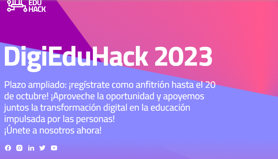 El Hackathon de Educación Digital (DigiEduHack) es un movimiento de base que tiene como objetivo fomentar la innovación, la colaboración y la creatividad e impulsar un cambio positivo en la educación digital. Proporciona soluciones a los desafíos existentes y futuros en la educación digital. Se basa en eventos locales de 24 horas que se llevan a cabo durante un período de ocho días, del 6 al 13 de noviembre. Ya sea en Europa o en cualquier otro lugar del mundo, los participantes se reúnen para crear soluciones a diversos desafíos relacionados con la educación digital. DigiEduHack comenzó en 2019, como parte del primer Plan de Acción de Educación Digital de la Comisión Europea . En sus tres primeras ediciones, reunió a más de 6.700 participantes de Europa y del resto del mundo. La iniciativa continúa en el marco del Plan de Acción de Educación Digital 2021-2027 , con el objetivo a largo plazo de apoyar la innovación de base y contribuir a los objetivos del Centro Europeo de Educación Digital . Ya seas un genio de la programación o no tengas habilidades tecnológicas, un educador experimentado o un verdadero novato: si te apasiona la educación digital, te interesa. Buscan mentes creativas de Europa y de todos los rincones del mundo para abordar los desafíos actuales de la educación digital. Para más información, haz click AQUÍ.