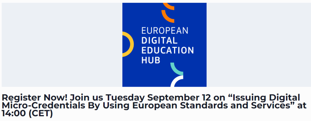 ¿TE INTERESAN LAS CREDENCIALES DIGITALES?: Evento de formacion online “Emisión de microcredenciales digitales mediante el uso de estándares y servicios europeos” 12 de septiembre a las 14:00 (CET)