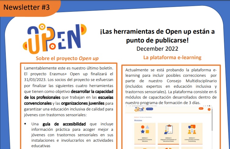 OpenUp tercer boletín de noticias #ErasmusPlus #PersonasconDiscapacidad
