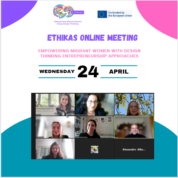 Hoy nos hemos reunido via GMEET con los socios de Ethikas: Empowering Migrant Women Using Design THInKing ApproacheS for Sustainable Entrepreneurship para avanzar en el proyecto. En los últimos años, el número de refugiados y migrantes en Europa sigue siendo alto en la mayoría de los países de la asociación ETHIKAS principalmente debido a las guerras y conflictos bélicos: tras Siria y Ucrania, el conflicto entre Israel y Palestina ha venido a recrudecer el panorama migratorio . Como ya os informamos, Ethikas: Empowering Migrant Women Using Design THInKing ApproacheS for Sustainable Entrepreneurship se aprobó en Suecia el pasado Mayo y los promotores son Internationella Kvinnoföreningen – LRC För Kvinnor, con sede en Malmö. Estamos trabajando para apoyar el emprendimiento social y sostenible de las mujeres migrantes a través de enfoques centrados en el ser humano que las equipen con las habilidades, los conocimientos y la mentalidad necesarias para construir un sistema que funcione para todos: la sociedad, la economía y el medio ambiente. Este objetivo se desarrolla aún más mediante los siguientes objetivos que incluyen el desarrollo de 21 actividades específicas y un manual basadas en el marco típico del Design Thinking (es decir, INSPIRACIÓN – IDEACIÓN – IMPLEMENTACIÓN). Ya hemos implementado 3 reuniones presenciales en Malmö, en Bologna y la tercera se celebró Atenas en Noviembre de 2023: allí los socios se pusieron al día sobre la traducciones de los 21 materiales así como del piloto que se celebrará el año próximo. Esta reunión de hoy ha servido para ponernos al día sobre la traducción del manual a todos los idiomas y las actividades pendientes de cara a implementar los pilotos este año, a lo largo de este 2024 así como de la próxima reunión en Finlandia. Este año, se celebrarán tambien los 7 eventos multiplicadores que ayudarán a comunicar y difundir los resultados del proyecto y aumentar su visibilidad a nivel local y nacional. Os seguiremos iremos informando sobre Ethikas.
