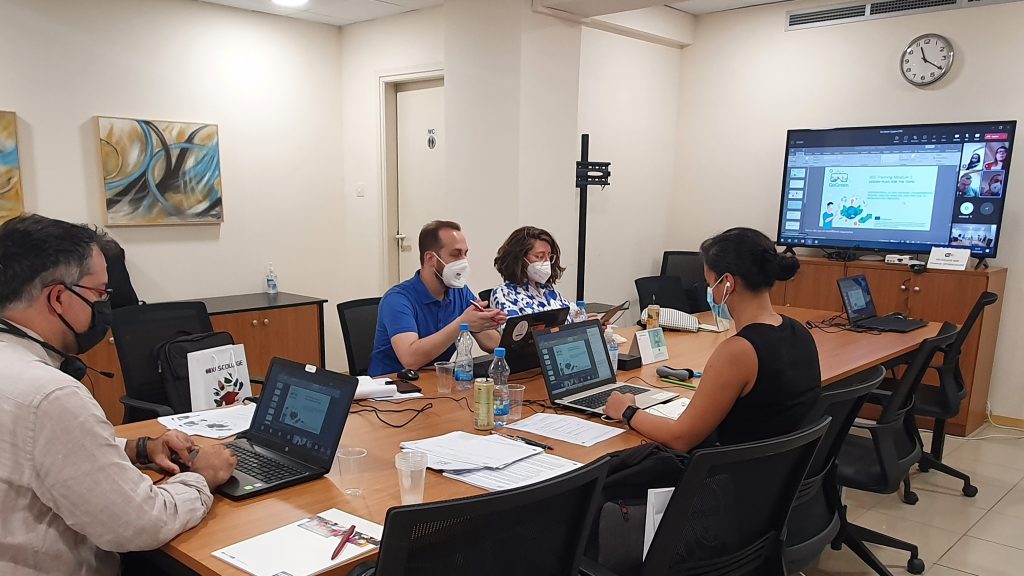 Nos reunimos hace unas semanas para hacer un piloto semipresencial de la formación desarrollada en el proyecto GoGreen Pronto estarán disponibles los recursos online y los módulos de formación para aportar nuestro granito de arena y contribuir a la reducción de gases de efecto invernadero. IO1: Plan de estudios ecológico de FP utilizando tecnología de realidad aumentadaEstá ya disponible online en la web del proyecto. IO2: Kit de formación basado en simulaciónEl Kit de formación basado en simulación está finalizado y se publicará pronto en todos los idiomas del proyecto. IO3: MOOC para la acción climáticaTodos los socios estamos trabajando en los diferentes recursos y unidades didácticas para tenerlo disponible cuanto antes.