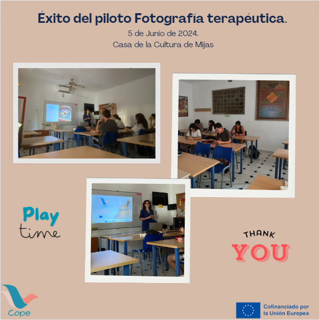 We have already been updating you on the progress of the COPE project, which aims to foster support among #young people to cope with #anxiety and #stress associated with the COVID-19 pandemic and the war in Ukraine. Today we met again with all online partners. From ITC we have celebrated the pilot with Youth with a Therapeutic Photography workshop with the collaboration of the Youth Association Intercambia and the area of Youth Town Hall of Mijas, as they have given us a room in the Casa de la Cultura de Las Lagunas. Soon we will celebrate the multiplier event and we will inform you all about the news of this incredible project. We remind you that the objectives of COPE are: a) to identify the psychosocial challenges of young people in adverse circumstances as well as good practices in the participating countries. b) to design and develop an online learning platform for youth peer support under the guidance of professional workers based on the identified needs. c) train trainers and youth workers and implement a pilot to promote peer support.