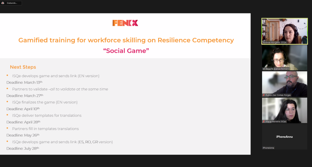 Nos reunimos hoy con los socios de FENIX y avanzamos en el juego social: Resiliencia organizativa y adaptación para afrontar las crisis #Erasmus+