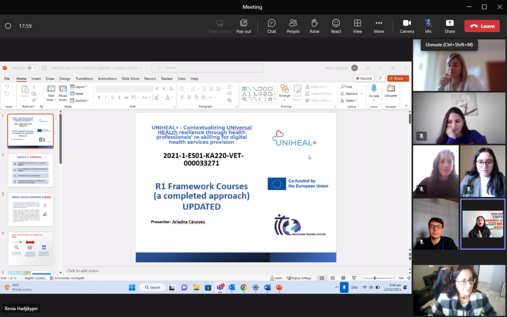 Reunión online en el marco de UNIHEAL+, actualización de competencias digitales para los trabajadores sanitarios #Erasmus+