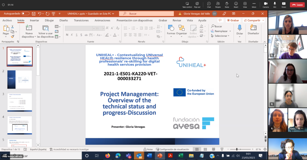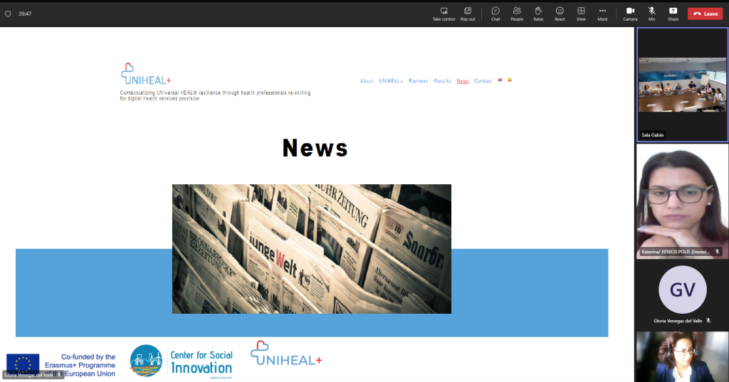 Reunión online con los socios de UNIHEAL+, actualización de competencias digitales para los trabajadores sanitarios #Erasmus+