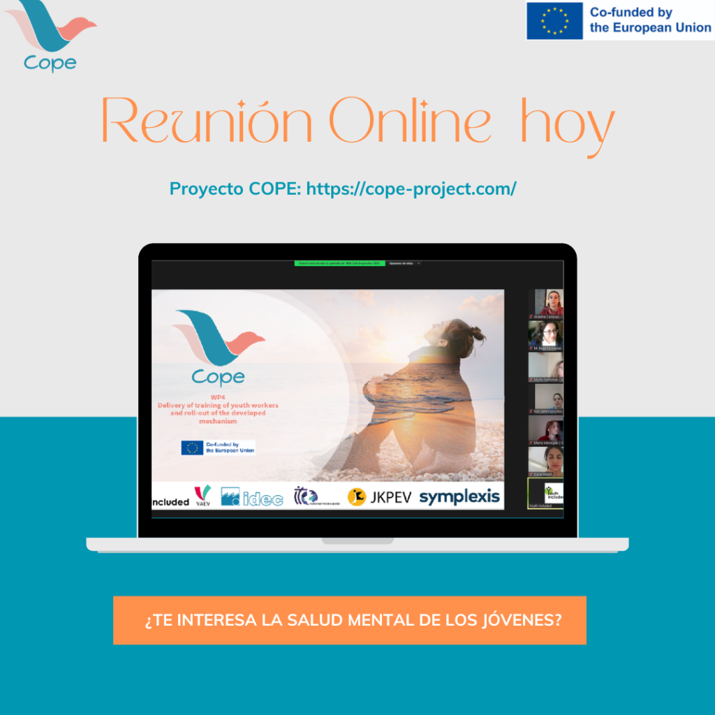 Ya os hemos ido informando sobre los avances del proyecto COPE, que se propone fomentar el apoyo entre #jóvenes y así poder afrontar la #ansiedad y el #estrés asociados con la pandemia de COVID-19 y la guerra en Ucrania. Hoy nos hemos reunido de nuevo con todos los socios online. En este marco recordamos que los objetivos de COPE son: a) identificar los desafíos psicosociales de los jóvenes en circunstancias adversas así como buenas prácticas en los países participantes. b) diseñar y desarrollar de una plataforma de aprendizaje online para el apoyo entre jóvenes bajo la guía de trabajadores profesionales en base a las necesidades identificadas. c) formar a formadores y trabajadores juveniles e implementar un piloto para promover el apoyo entre jóvenes. Desde ITC te damos la oportunidad de participar en la formacion de formadores que celebraremos en breve: ¿quieres ponerte al día sobre las distintas técnicas para afrontar el stress y la ansiedad? ¿te interesaría a ayudar a los jóvenes a mejorar su salud mental y su bienestar?: si la respuesta es sí, no lo dudes y APUNTATE A LAS SESIONES DE FORMACIÓN AQUÍ. Estas sesiones se organizarán tambien en la República Checa, Grecia, Austria y Alemania. Os iremos informando de las novedades de este incredible proyecto.