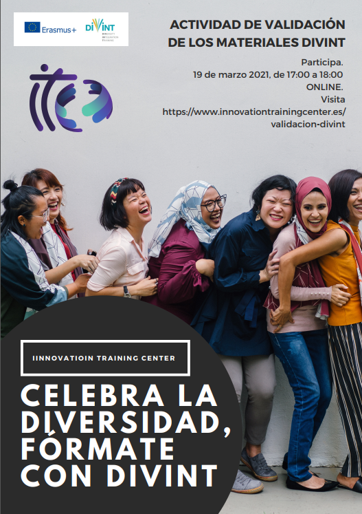 El próximo viernes 19 de Marzo presentaremos el proyecto DIVINT (DIVERSITY, INTEGRATION, TRAINING) y su propuesta para capacitar a los educadores y formadores que trabajan con migrantes para hacer frente a la diversidad e impulsar la educación intercultural en Europa a través de una educación integradora e inclusiva. De este modo, presentaremos tanto el KIT DE HERRAMIENTAS , como la plataforma online adaptada a las necesidades de profesores y alumnos en donde ITC hemos desarrollado 2 recursos que ya están online, en castellano:
