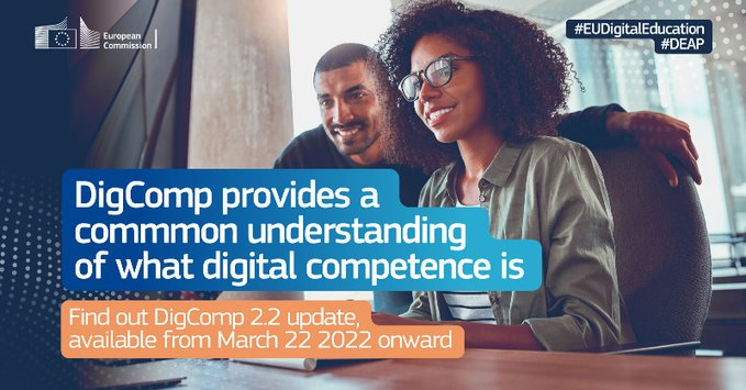 La actualización DigComp 2.2 se ha publicado el 22 de marzo de 2022, proporciona más de 250 nuevos ejemplos de conocimientos, habilidades y actitudes que ayudan a los ciudadanos a interactuar con confianza, crítica y seguridad con las tecnologías digitales y las nuevas y emergentes, como los sistemas impulsados por inteligencia artificial (IA). El marco también está disponible siguiendo las pautas de accesibilidad digital, ya que la creación de recursos digitales accesibles es una prioridad importante en la actualidad. La segunda parte de la publicación ofrece una instantánea del material de referencia existente para DigComp que consolida las publicaciones y referencias publicadas anteriormente. Los anexos incluyen un apéndice específico sobre los ciudadanos que interactúan con los sistemas de IA y sobre el trabajo remoto/híbrido.